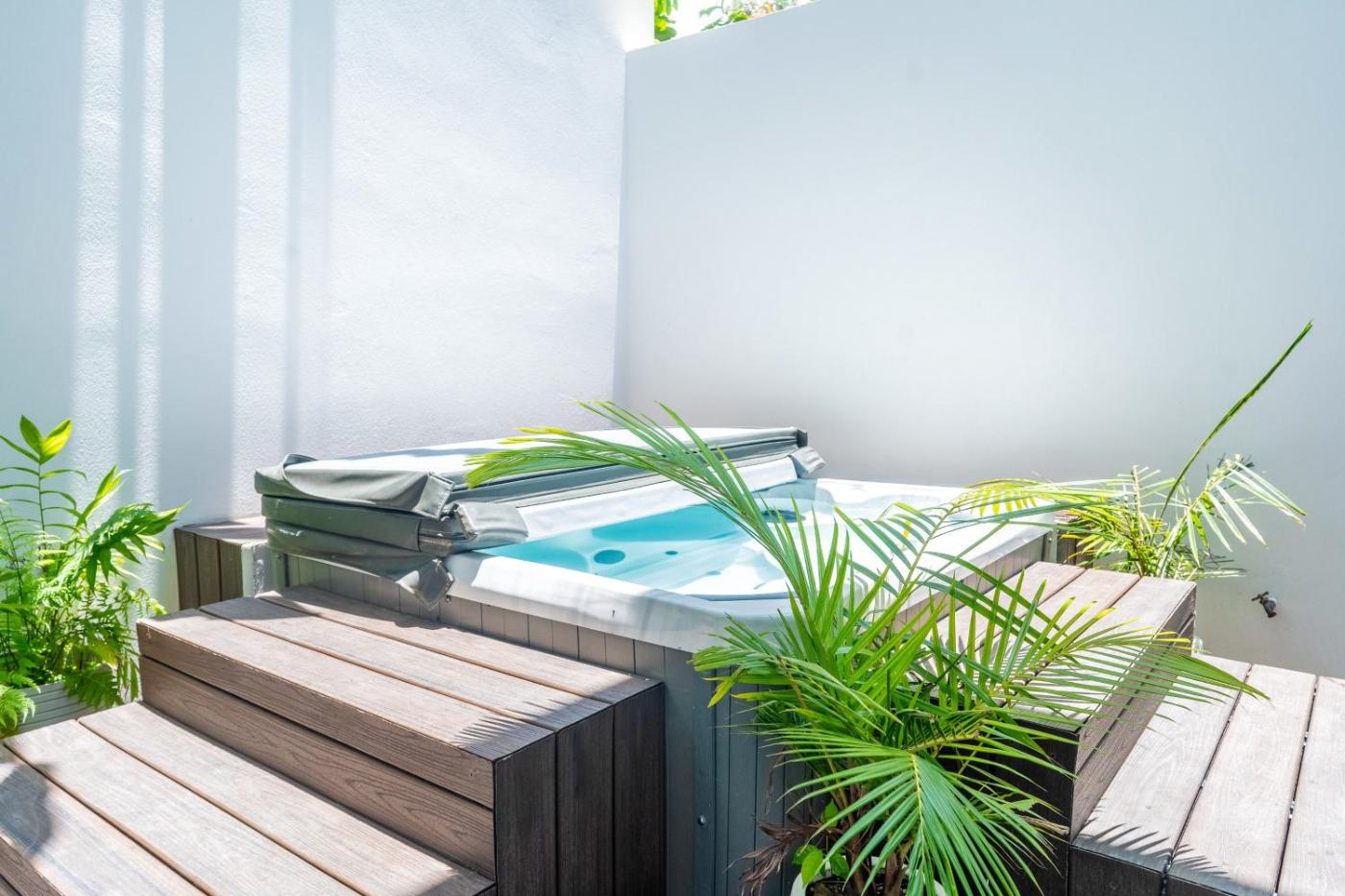 Three Bedroom Apartment. This apartments standout features are the hot tub and spa bath. Boasting a private entrance, this air-conditioned apartment includes 3 bedrooms, 3 bathrooms and a kitchen. The well-fitted kitchen features a stovetop, a refrigerator, a dishwasher and kitchenware. This apartment has a washing machine, a tea and coffee maker, a flat-screen TV with streaming services and a terrace. The unit has 4 beds.